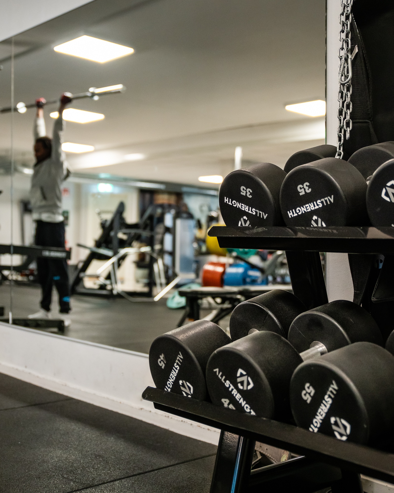 Vi har en bra mix av moderna maskiner och fria vikter.